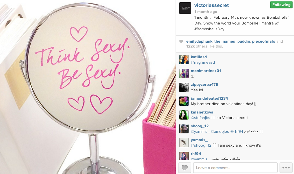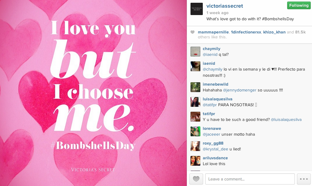 Leading up to D Day, the brand made a real effort of owning 14th February by calling it something else, and most importantly something that would strongly resonate with its target audiences (male and female). In Victoria’s Secret world, VD is now known as Bombshells’ Day – named after one of its most popular brands. The words Valentine’s Day were banned from its communication strategy, nowhere to be seen in the posts. Bombshells’ Day as a communication platform is not only a key differentiator but also has the bonus of longevity – it can be reused year after year.